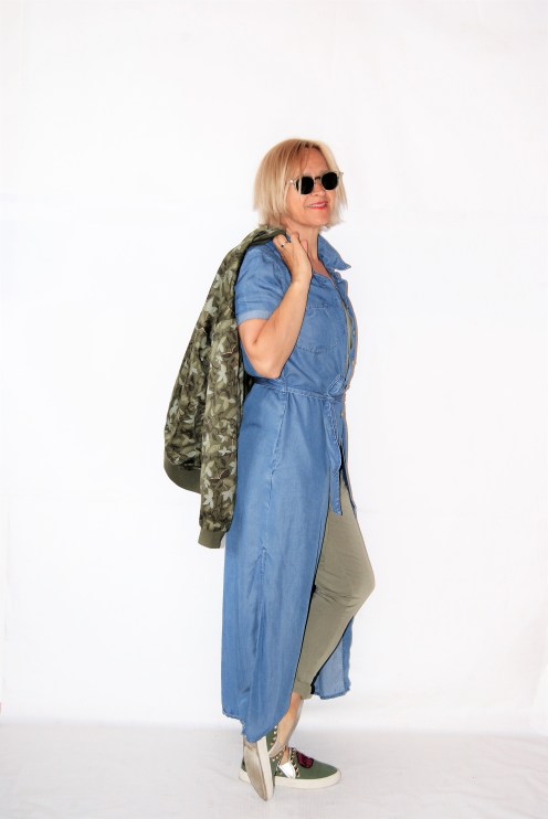 Geht das denn überhaupt, ein Kleid über einen Overall zu tragen?! Ich hab es ausprobiert und ich mag es. Das Jeanskleid hab ich euch ja schon mal hier gezeigt und heute wird es mit einem khakifarbigen Overall kombiniert. Der Overall alleine war mir einfach noch viel zuwenig, also mal den Kasten auf und schauen was der so her gibt zum Kombinieren.