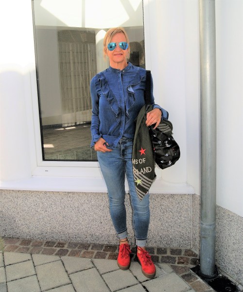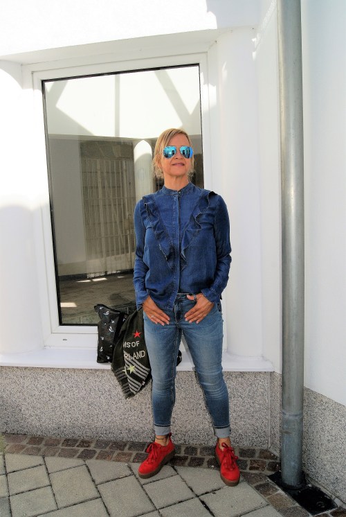 So jetzt wissen wir das auch, immerhin sollten wir ja eine Ahnung davon haben was so in und aktuell angesagt ist. Um was es eigentlich geht? Heute mal um eine Jeansbluse mit Volant und da sich der Trend auch durch die gesamte Kollektion, d.h. bei Shirts, Kleidern und Pullover durchzieht, ist es ja nicht schlecht auch gleich fachliches Wissen zu haben.