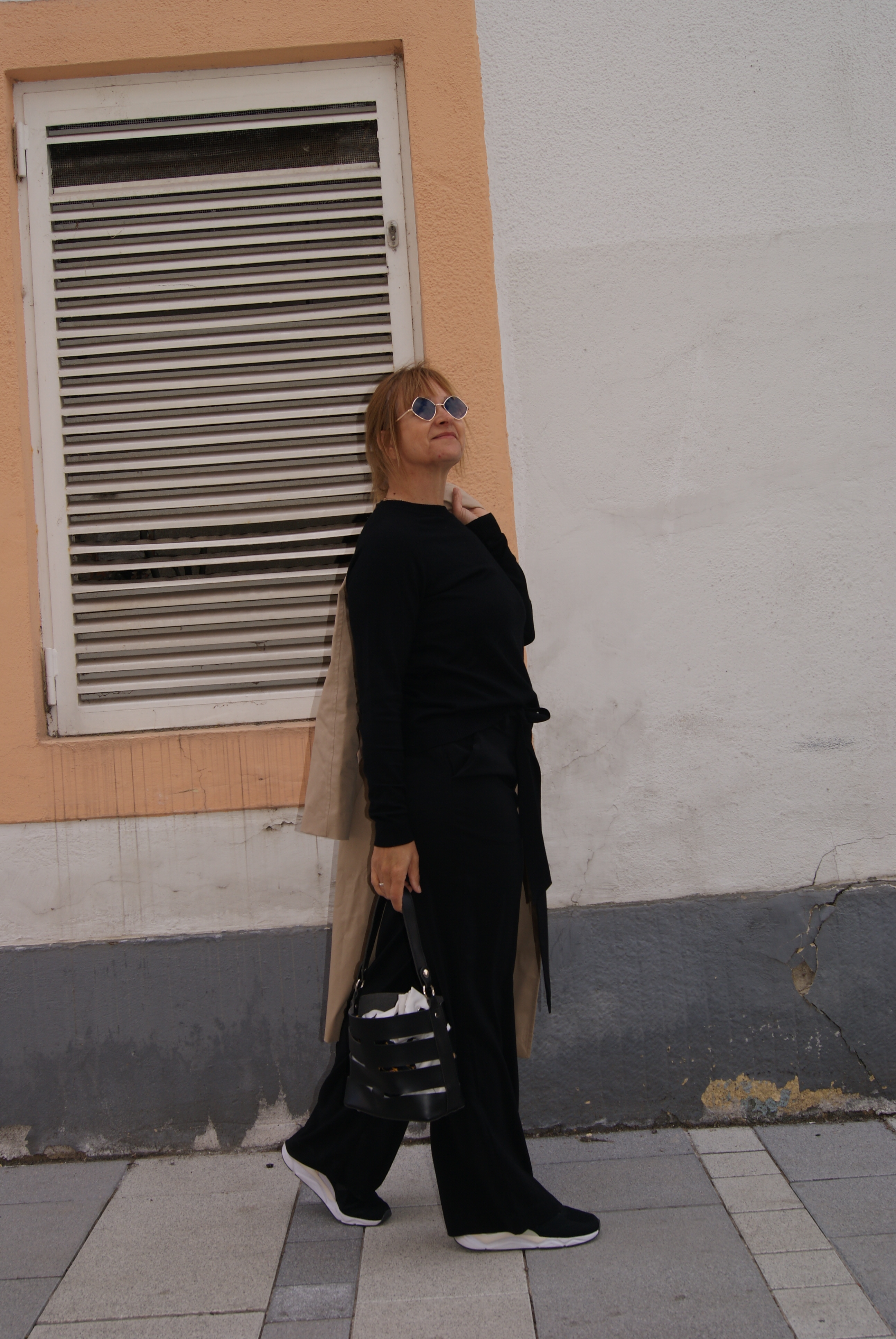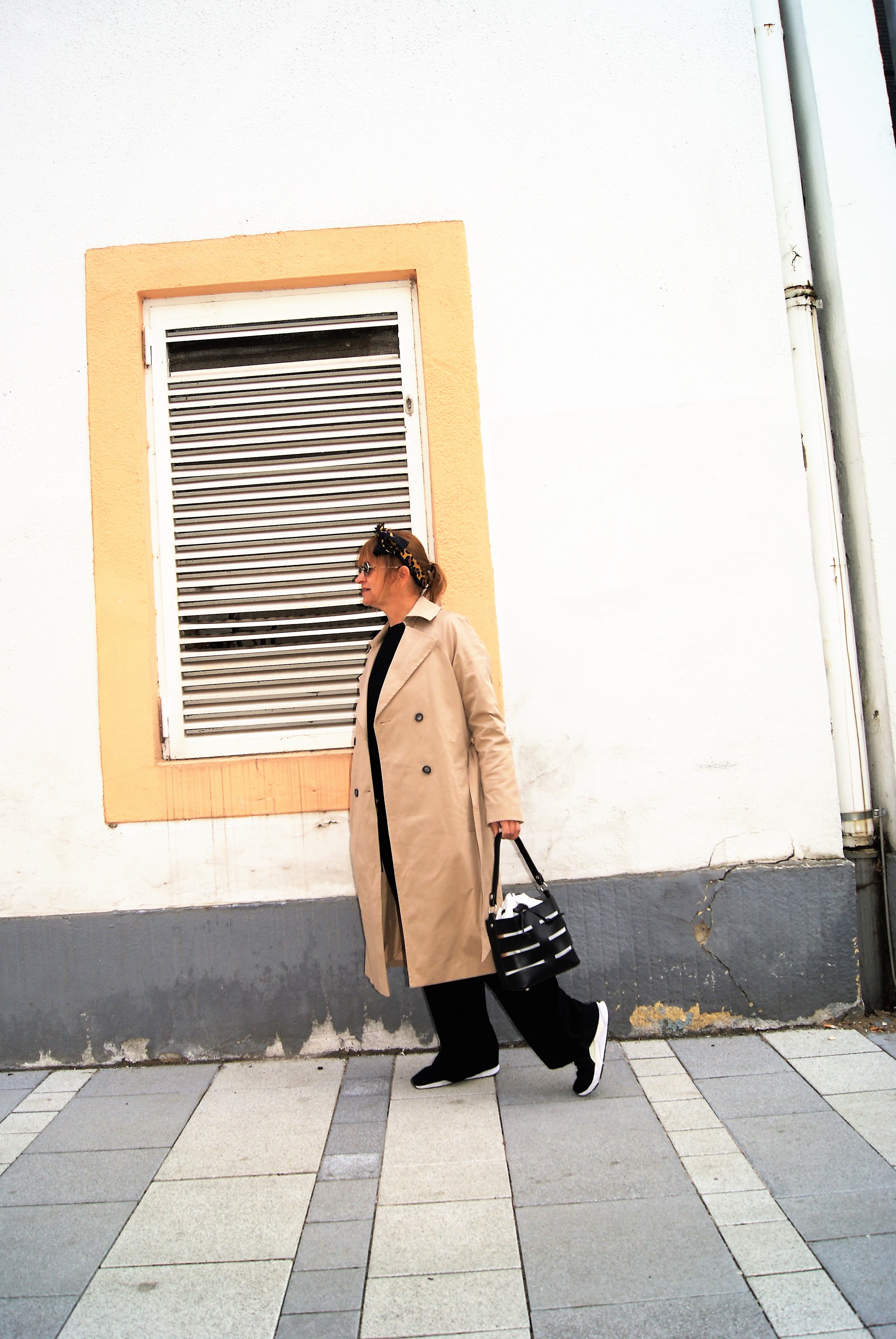 Wie du ja weißt sollte jede Frau einen Trench besitzen, das ist wirklich ein Klassiker. Ich habe ihn auch im klassichen beige gewählt und mein sonstiges Outfit sehr schlicht gehalten – schwarze Marlene-Hose und schwarzer Pulli.
