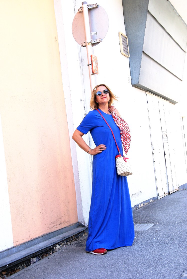 Das Kleid ist aus T-Shirt-Stoff, ja es geht schon eine Jeansjacke oder ein lässiger Pulli, auch eine Strickjacke drüber – aber ganz ehrlich, solo ist es doch am schönsten. Und du wirst es am eigenen Leib spüren wir springen von den Gummistiefeln direkt in die Flip Flops.
