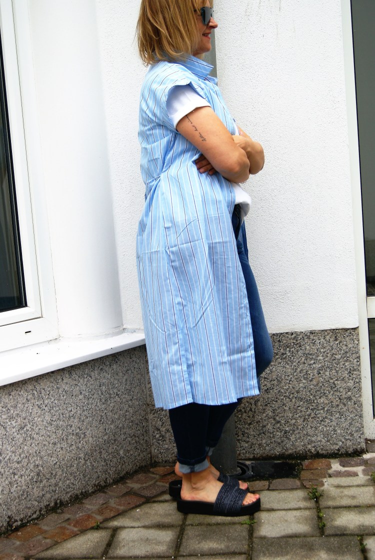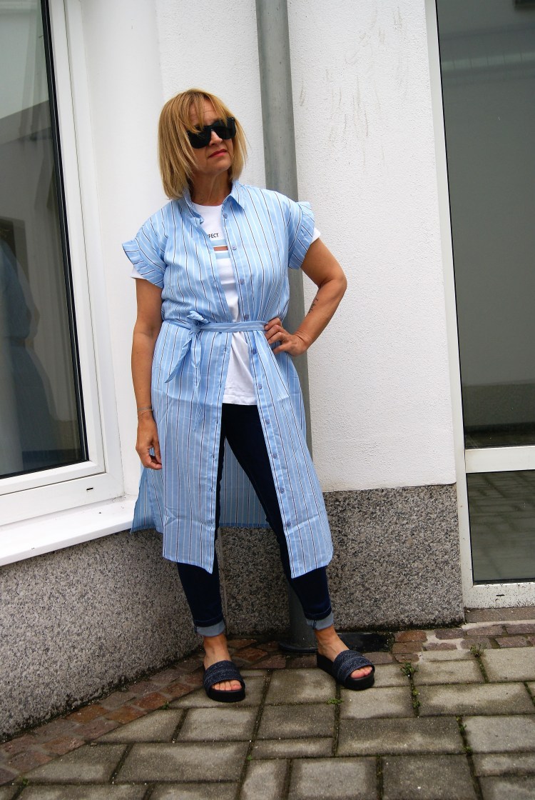 Das Streifenkleidchen ist bei Sonnenschein natürlich als Einzelteil ohne Begleiter super zu tragen, aber auch cool über den Bikini. Sofern wir den überhaupt heuer brauchen.