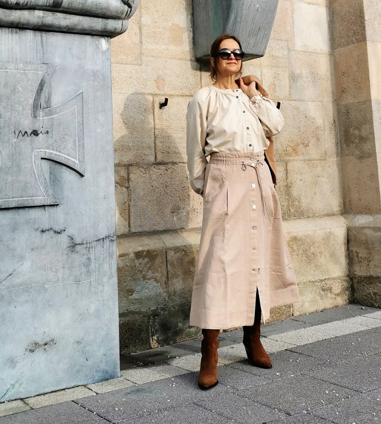 Lässig sind die Röcke, die schon auf dich warten, bequem mit Gummizug und in A-Linie geschnitten, also ein Teil, dass jede Frau tragen kann. Mit meinen Boots probier ich es jetzt doch noch einmal, ich hab mir jetzt Geleinlagen dazu gekauft und hoffe, dass ich jetzt einen Halt darin hab, denn wenn ich mir die Fotos so anschaue, die machen schon was her.