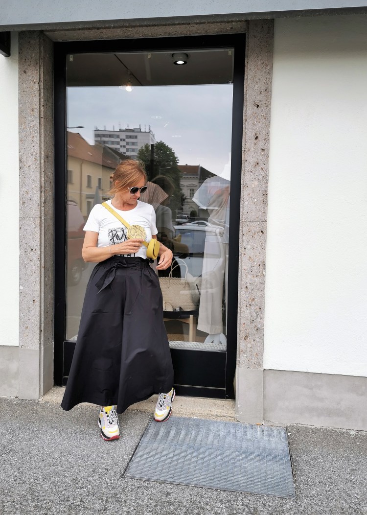 Och wie ich diese übergroßen, weiten Hosenröcke liebe, so cool und da zwickt und zwackt nichts, im Sommer wenn es heiß ist, ist er total luftig und wenn ich es doch mal brauchen würde, kann ich den auch elegant tragen. Ich hab dir zwei Stylingmöglichkeiten fotografiert, obwohl – da wären mir noch viele viele mehr eingefallen.