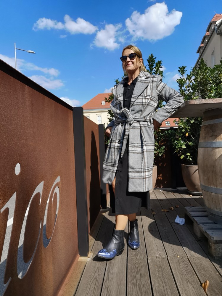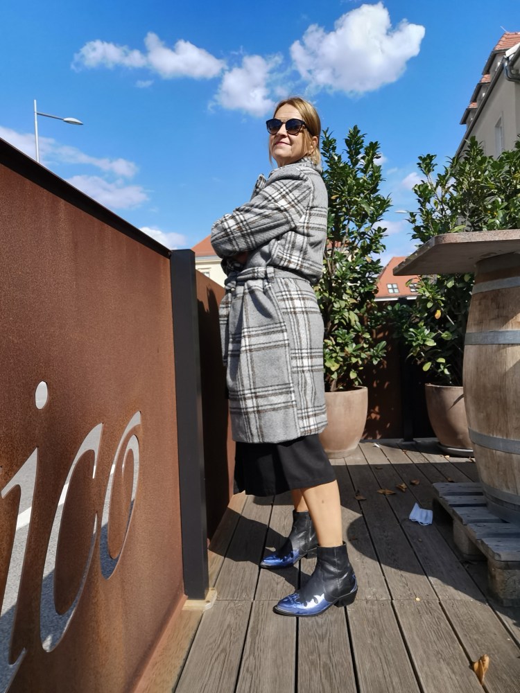 Der Sommer, bzw. Spätsommer bleibt uns noch ein wenig erhalten, jedoch in der Früh und am Abend spüren wir es deutlich, es wird immer kälter. Darum auch heute schon der erste Mantel und auch deshalb, da er so gut über das schöne Mantelkleid passt.