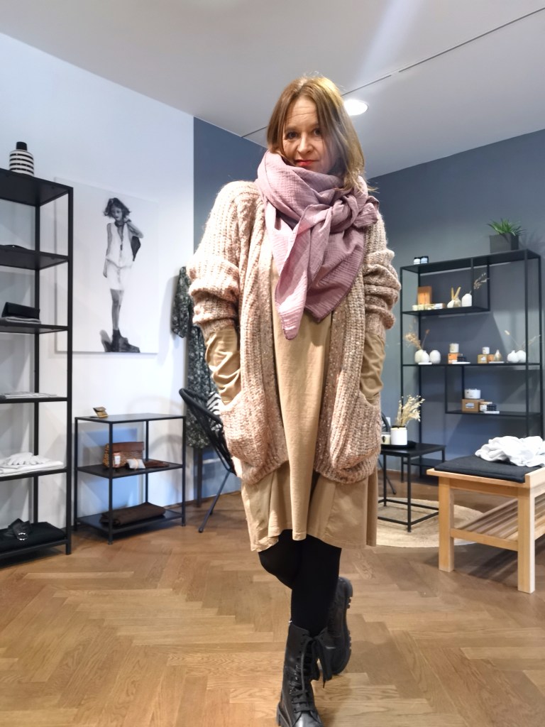 ..und für die kalten Tage ein Cardigan und Muselinetuch zum reinkuscheln.