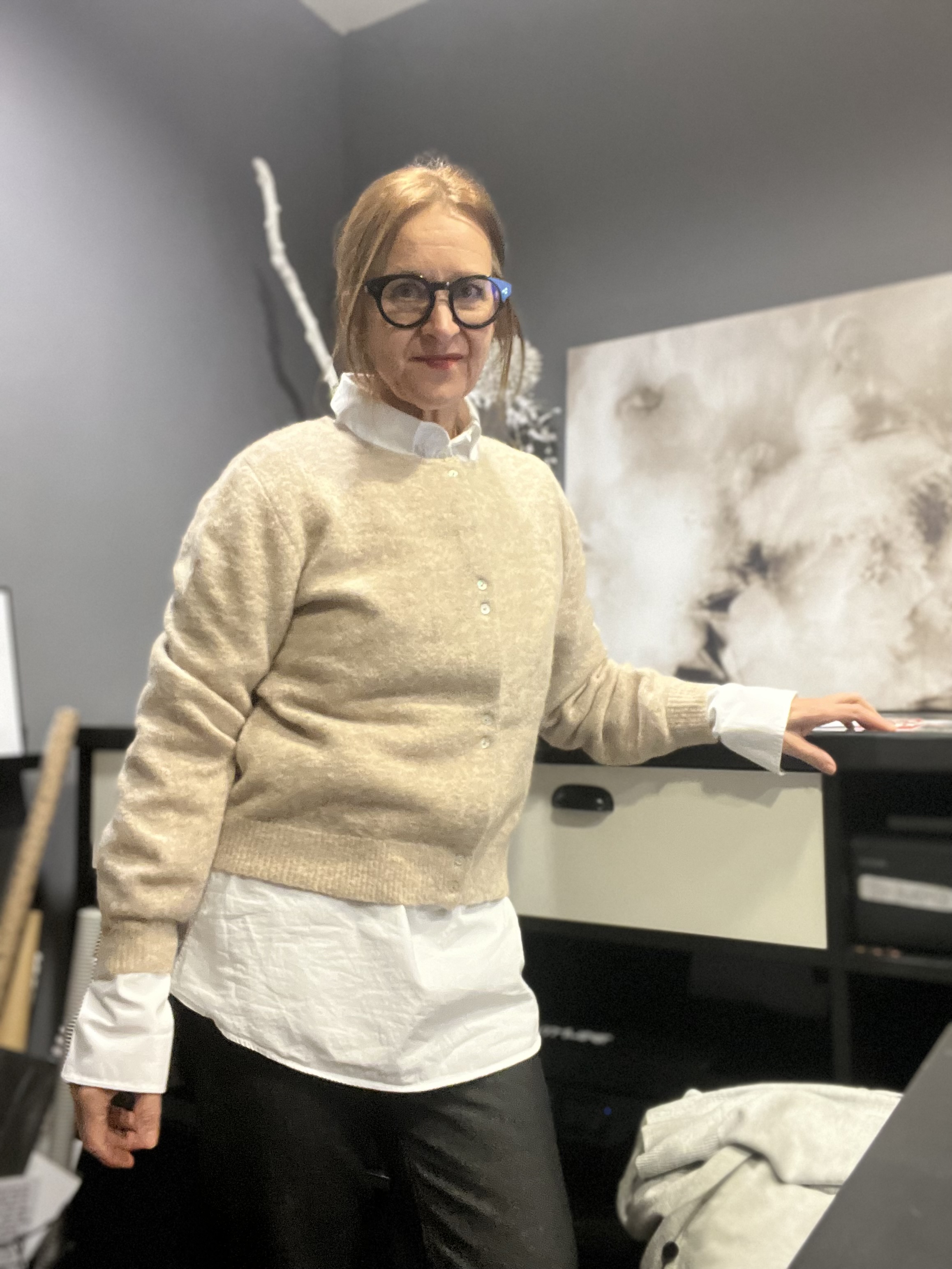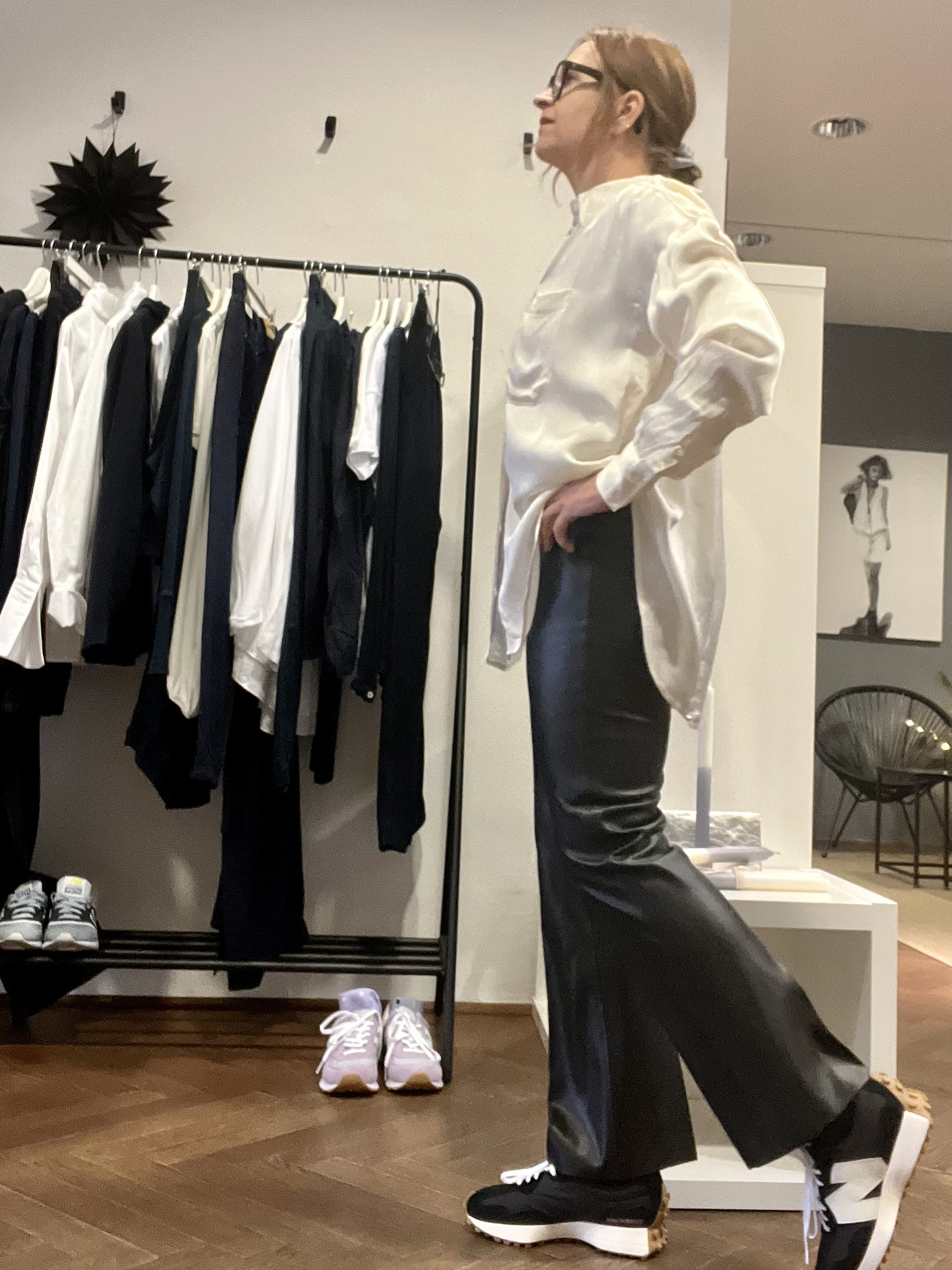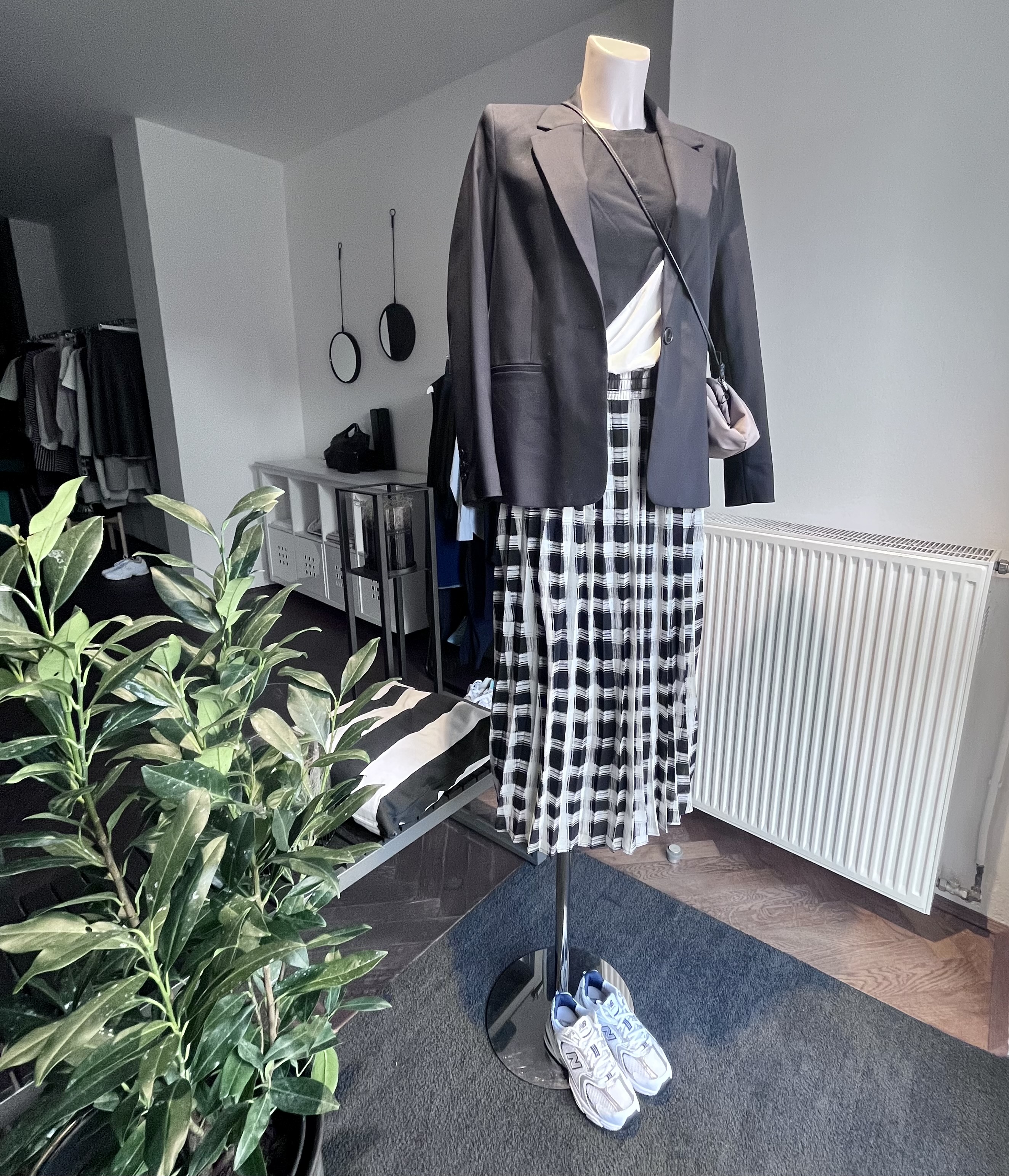 Klaro – schwarz/ weiß muss natürlich auch sein, diese Kombi konnte ich noch nicht angezogen festhalten, aber meine Mitarbeiterin hat alles gegeben. Sie hat sich schon etwas Lob verdient. Oder?