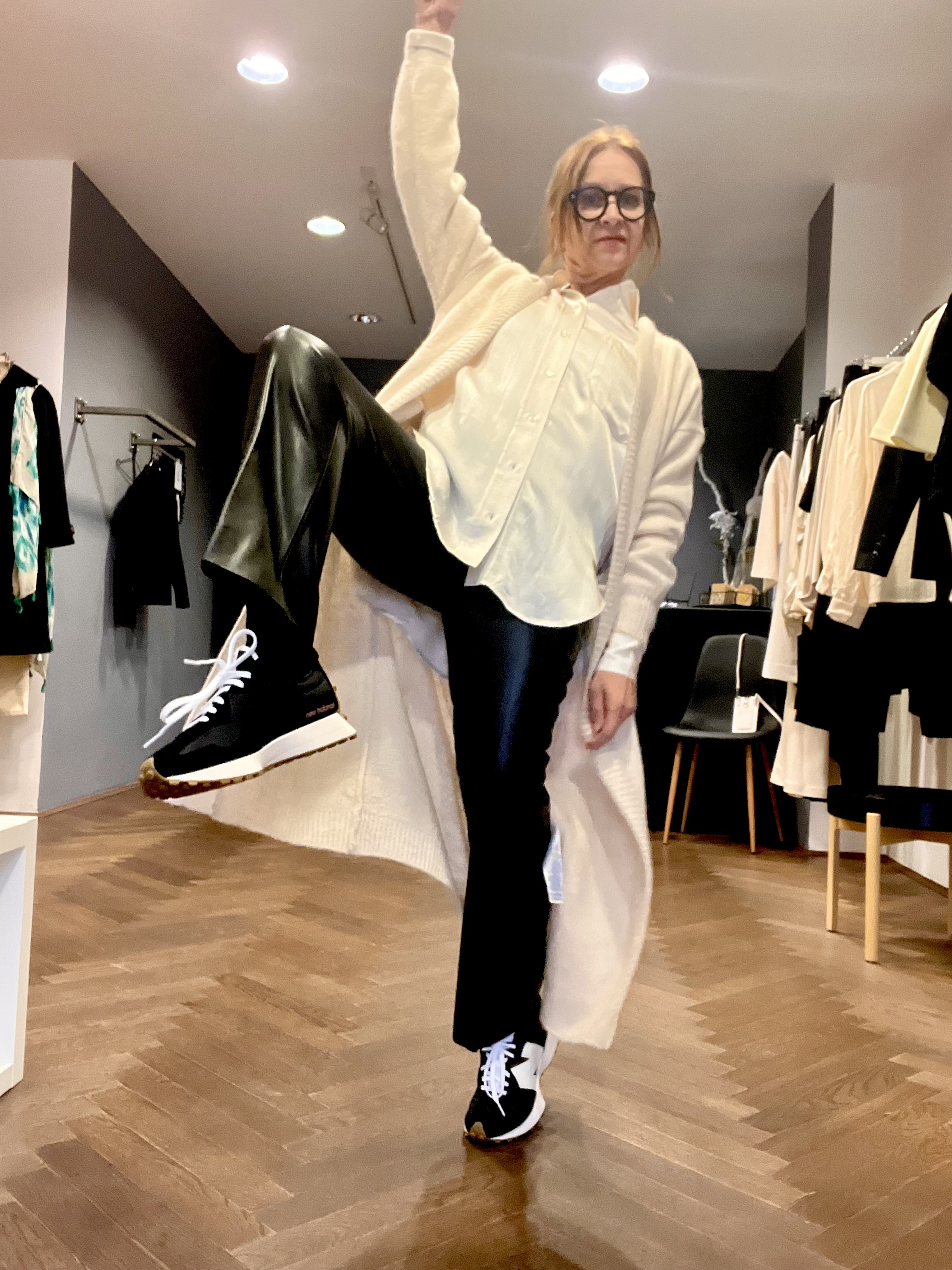 Diese New Balance sind auch schon aus der Frühjahrskollektion und da war ich etwas eigennützig – ich wollte unbedingt mal diese ganz sportlichen haben, die taugen mir total zu den Frühjahrsröcken und Kleidern. Klar gehen sie zu den Hosen auch, aber ich find halt immer so ein Stilbruch kann schon was.