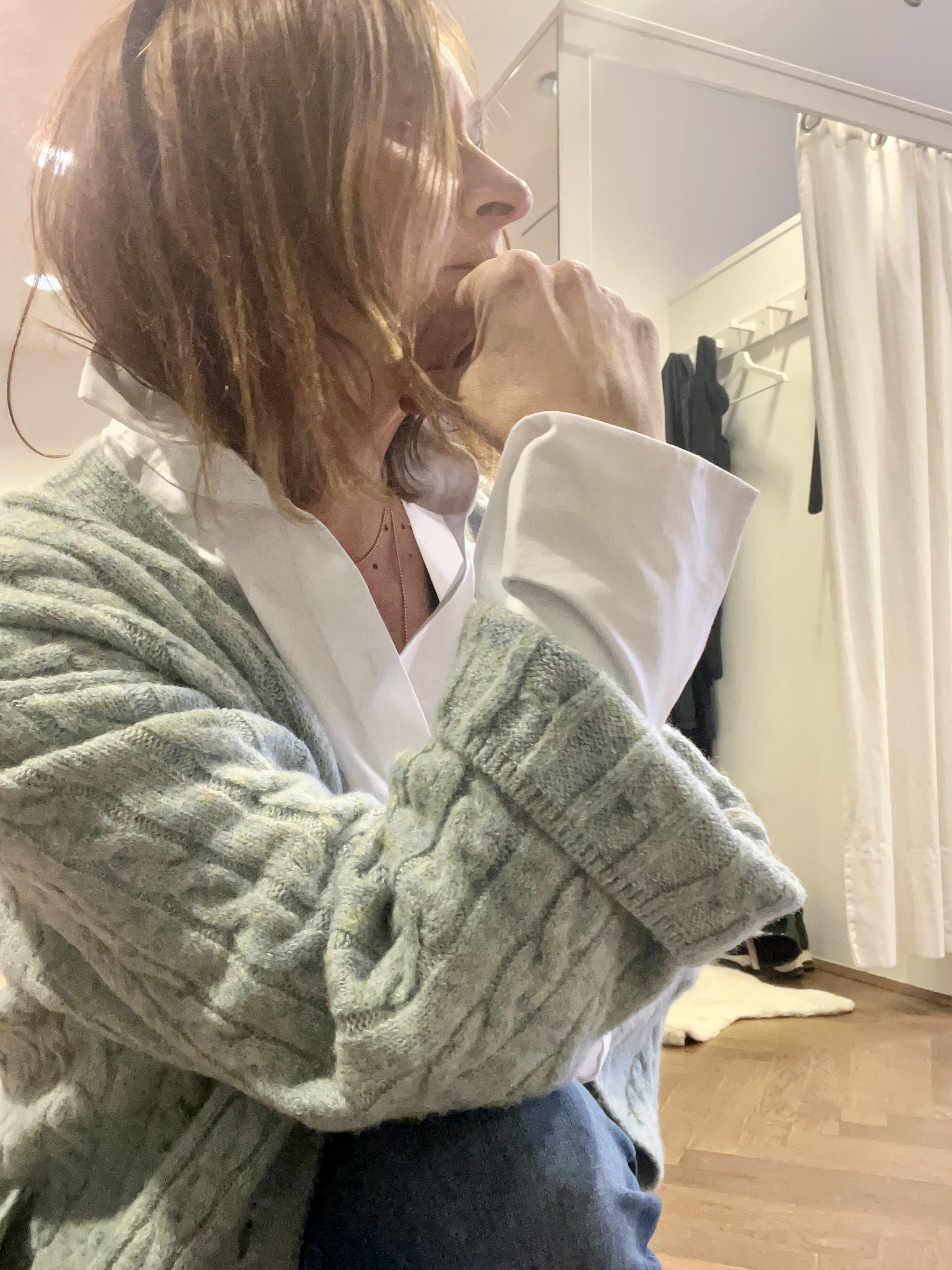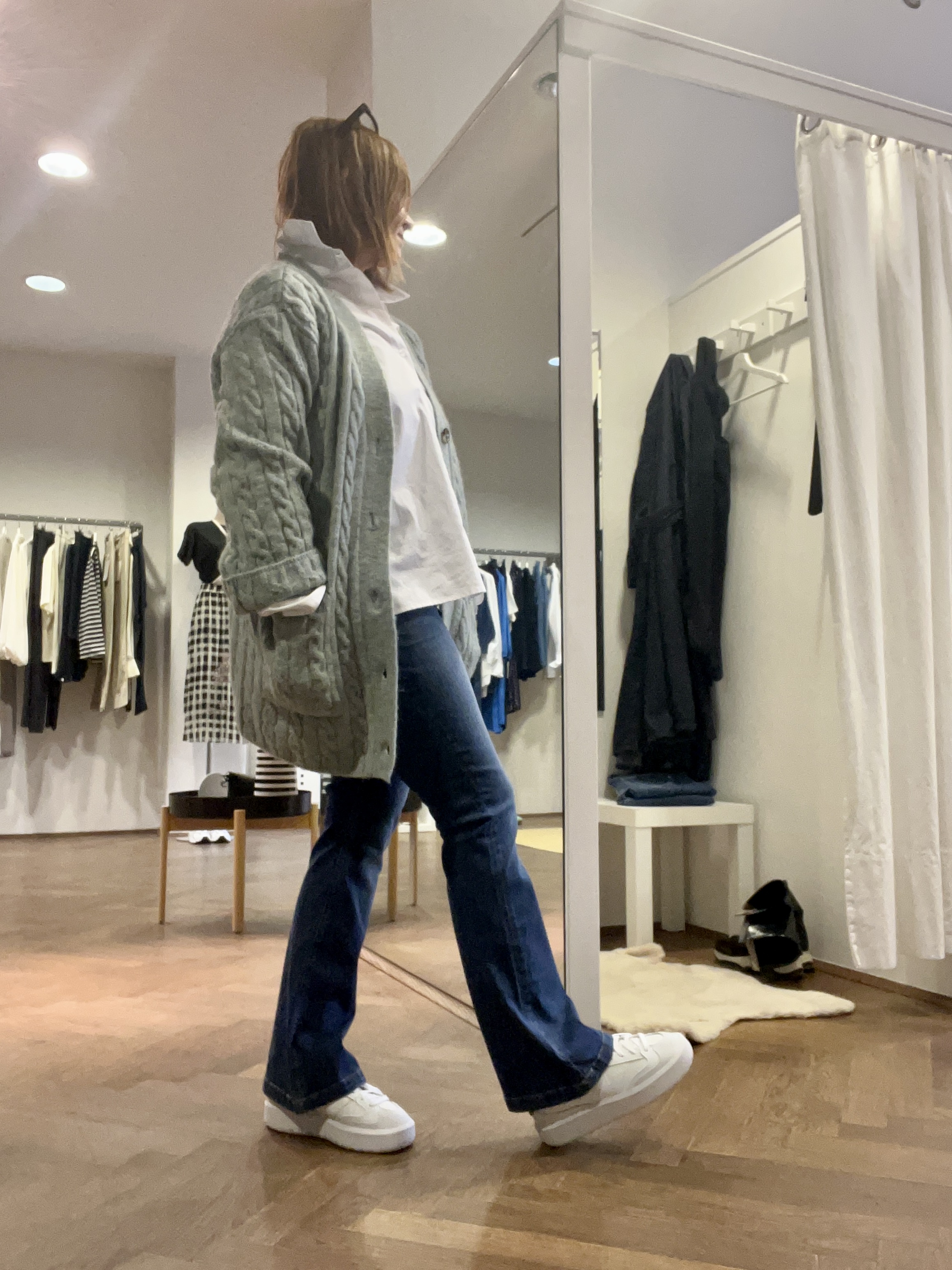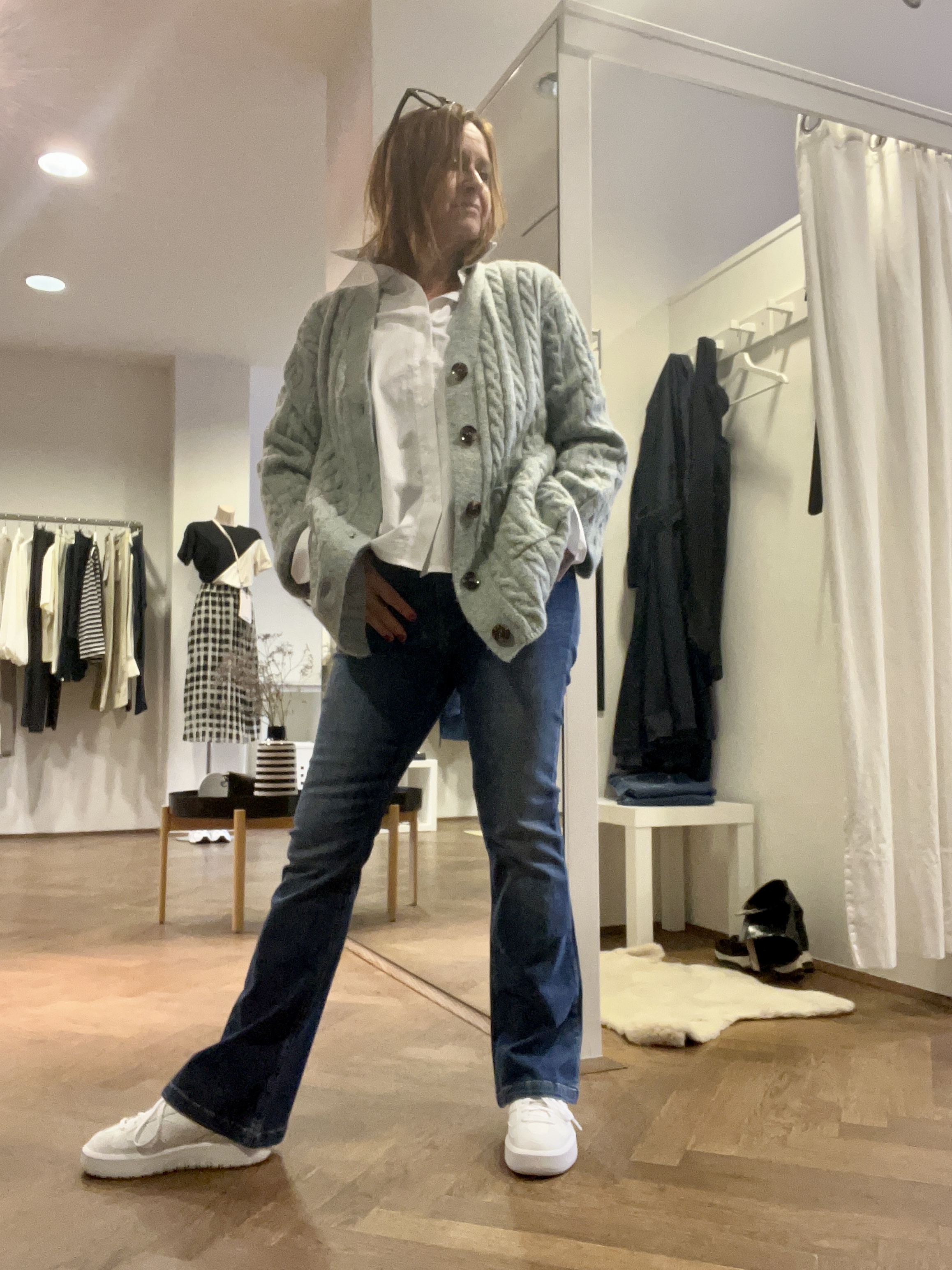 Ich mag am liebsten die Kombi mit Bootcut und Zopf-Strickjacke. ich hab die Jeans ja noch in „alt“, jetzt bin ich wieder ganz vorn mit dabei 🤣.