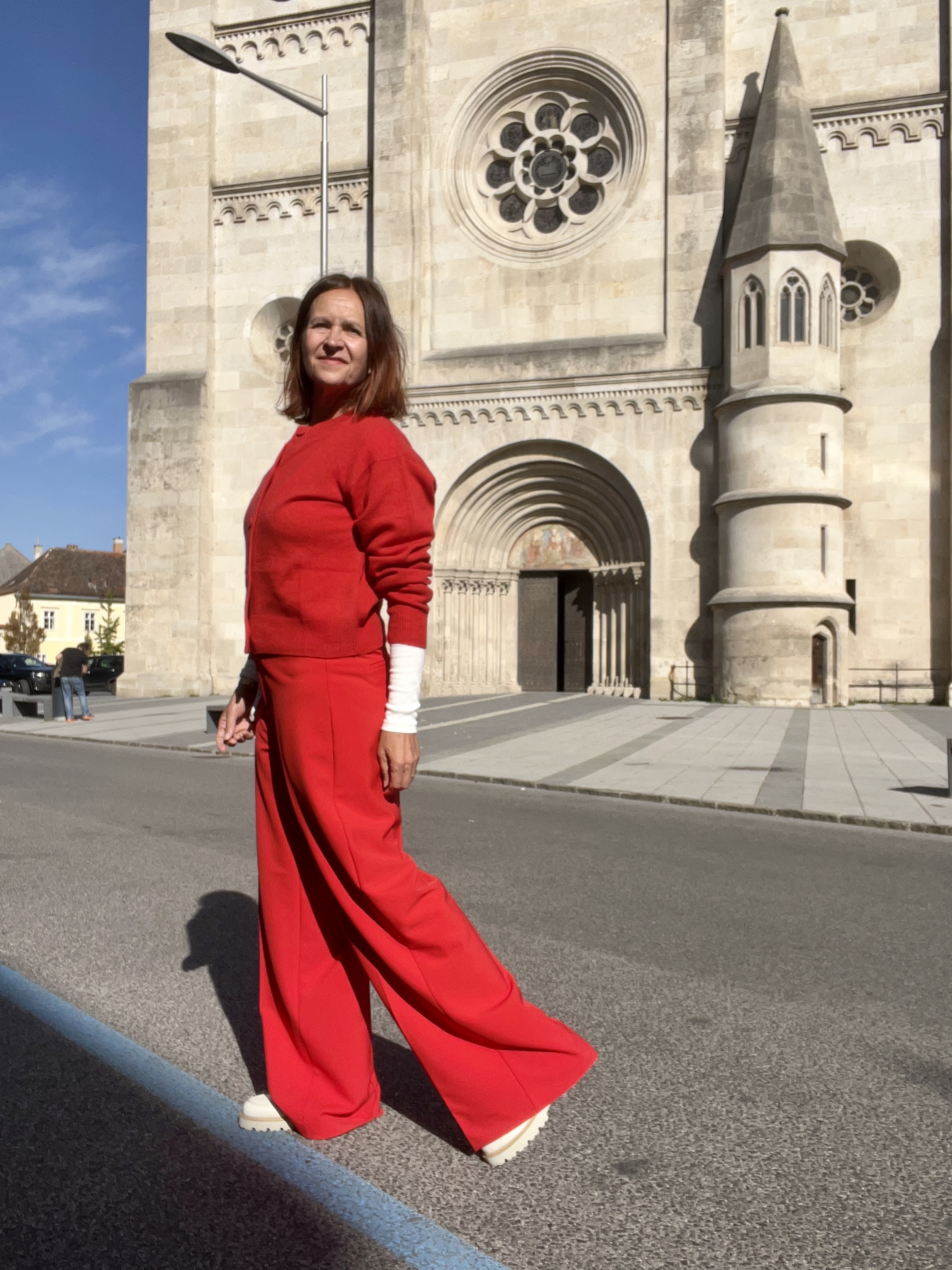 Die Instagram-/Facebookfollower kennen das ein oder andere bzw. das rote Outfit bereits, dennoch möchte ich nochmals auf diese coole Kombi eingehen. Das Cashmere-Jäckchen kann ich mir auch total gut mit weißer Bluse zu einer Jeans vorstellen oder zu einem beigen Kleid oder Rock. Auch die gerade geschnittene Hose wäre was für eine Weihnachtsfeier – in Kombination mit Blazer.