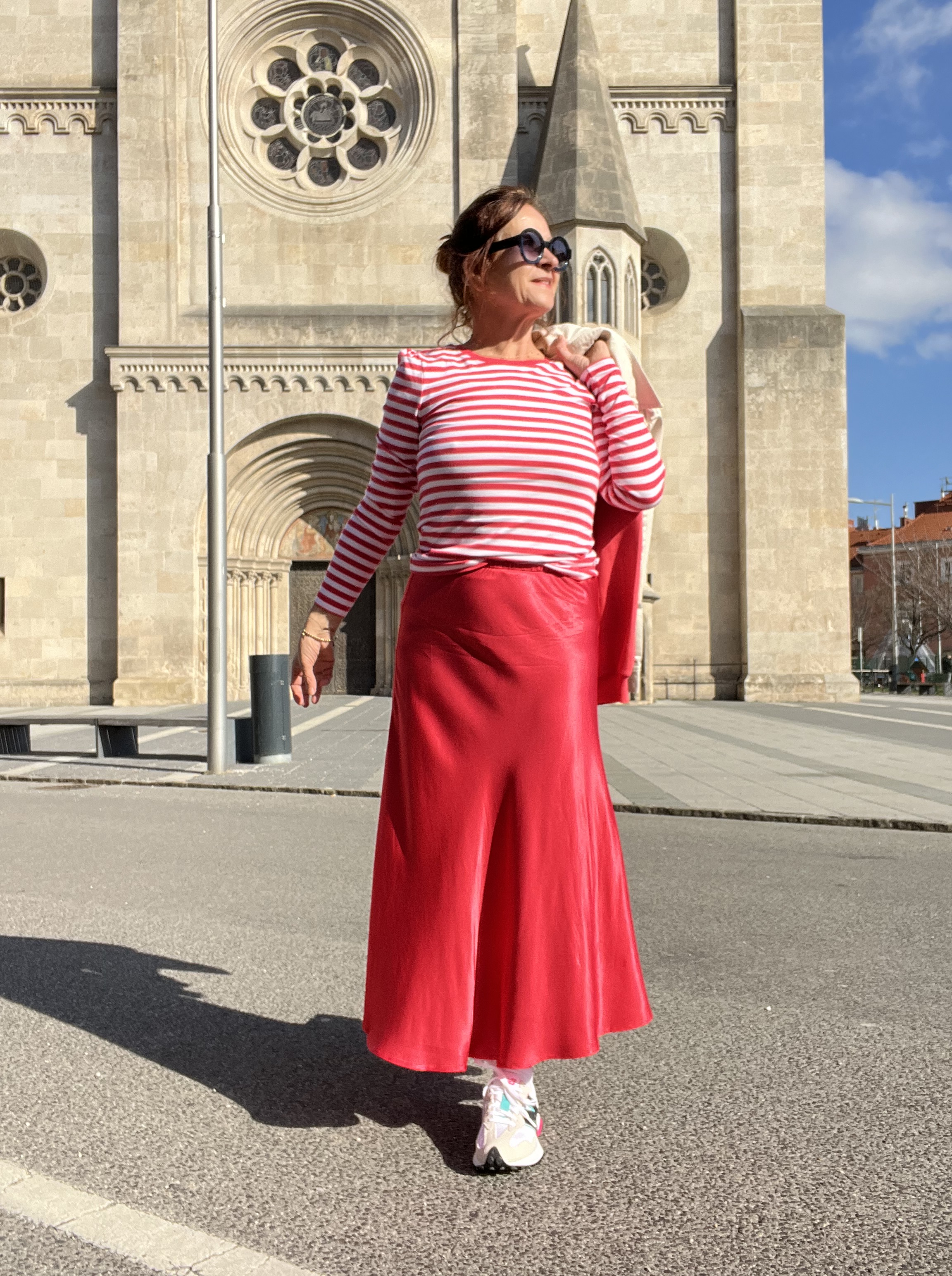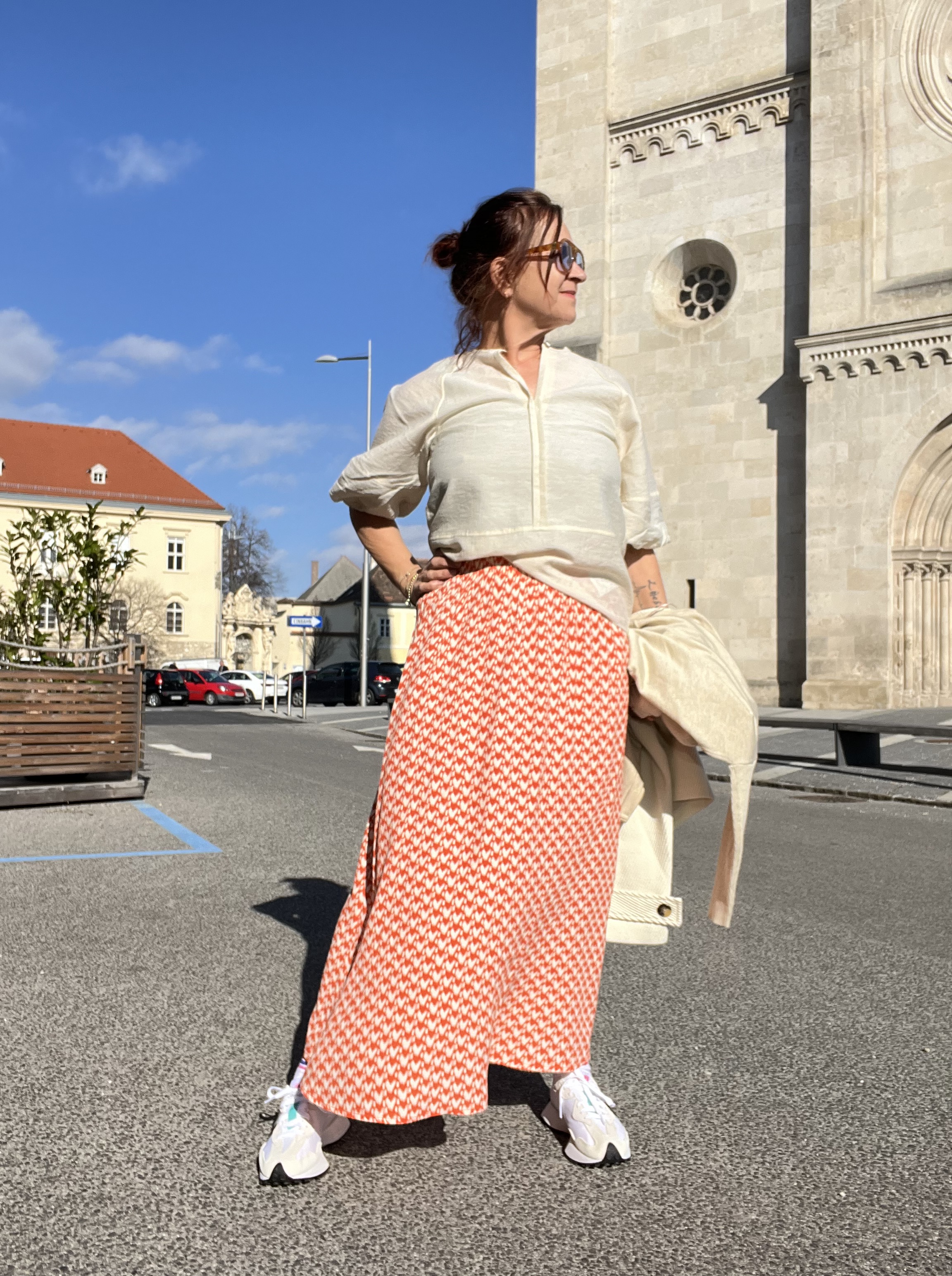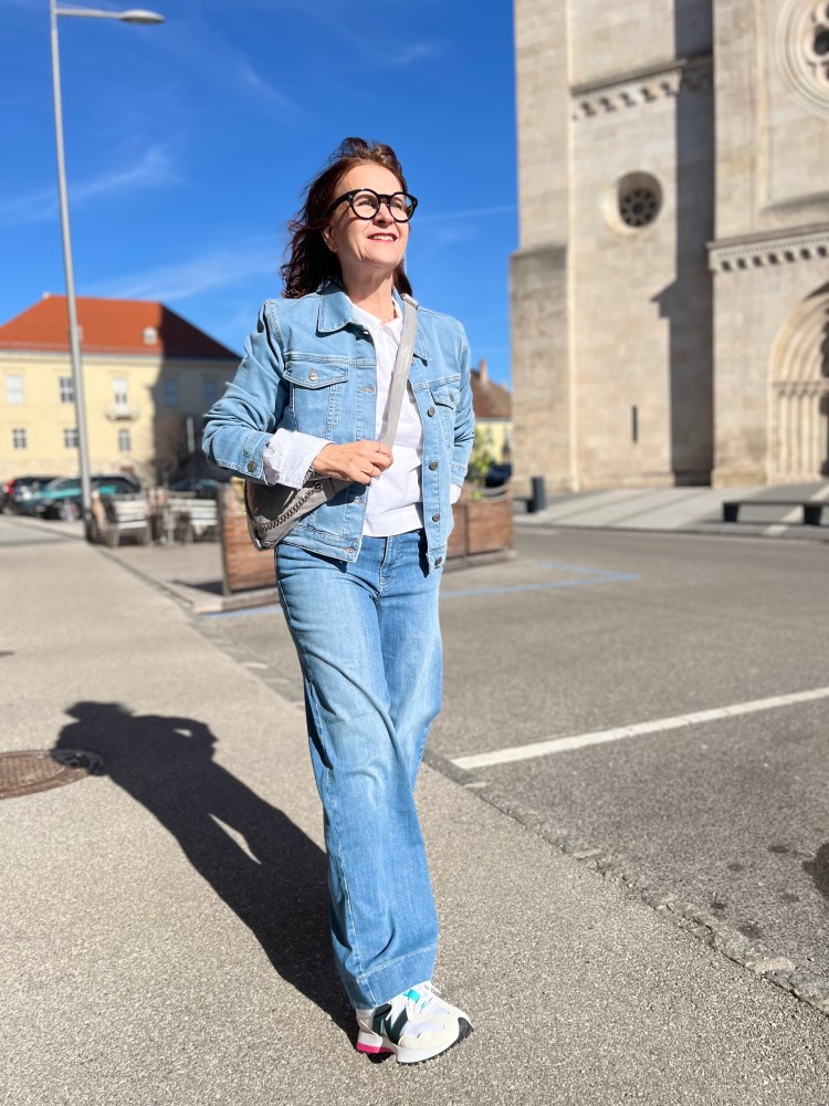 Aber auch die Jeansjacke feiert ihr Comeback – ich hab für dich eine Variante gewählt, die kürzer und eng anliegt, damit du sie gut zu den Röcken kombinieren kannst. Aber auch über längere Blusen, oder zu den gerade geschnittenen Hosen sieht sie mega aus.