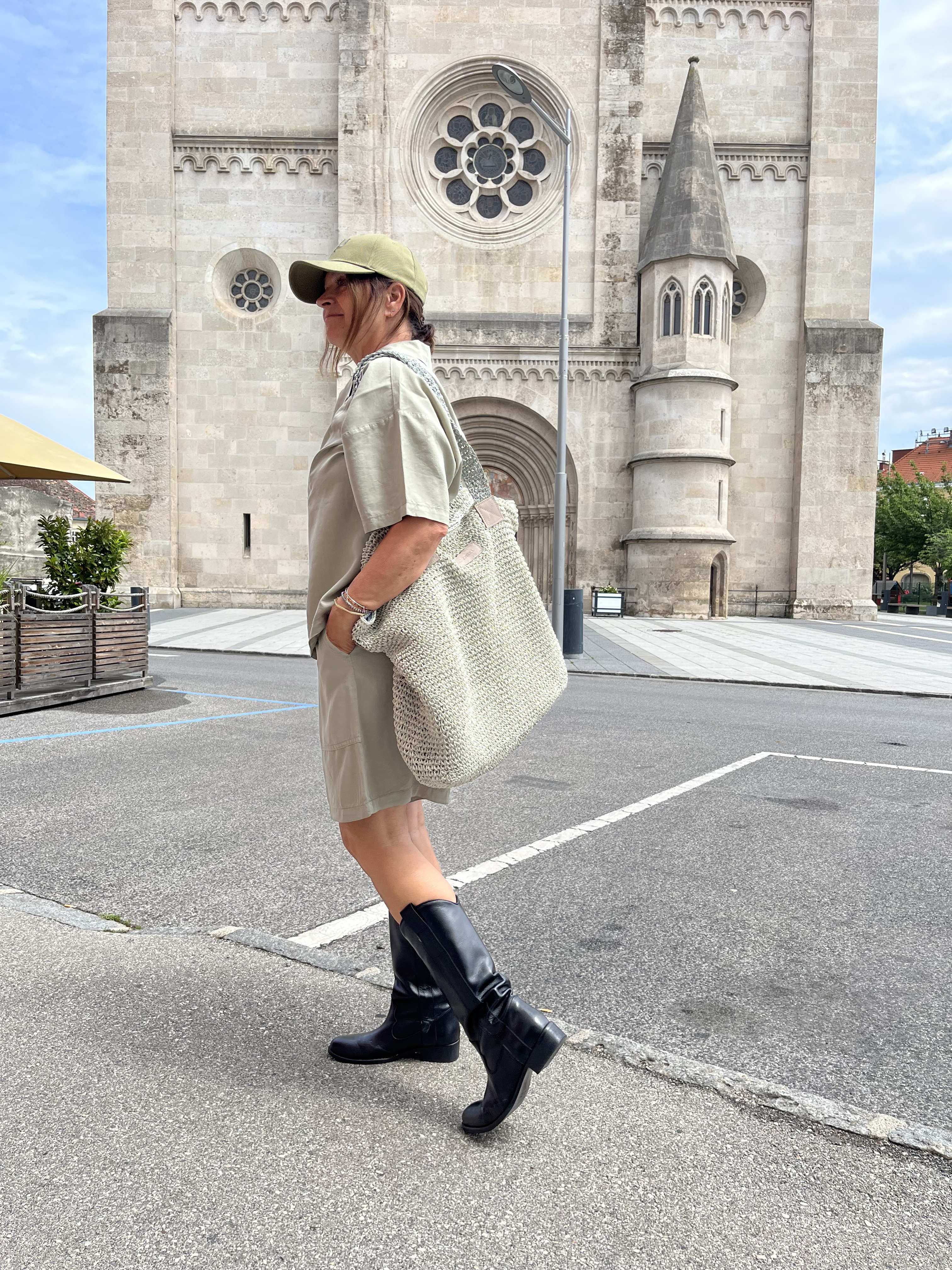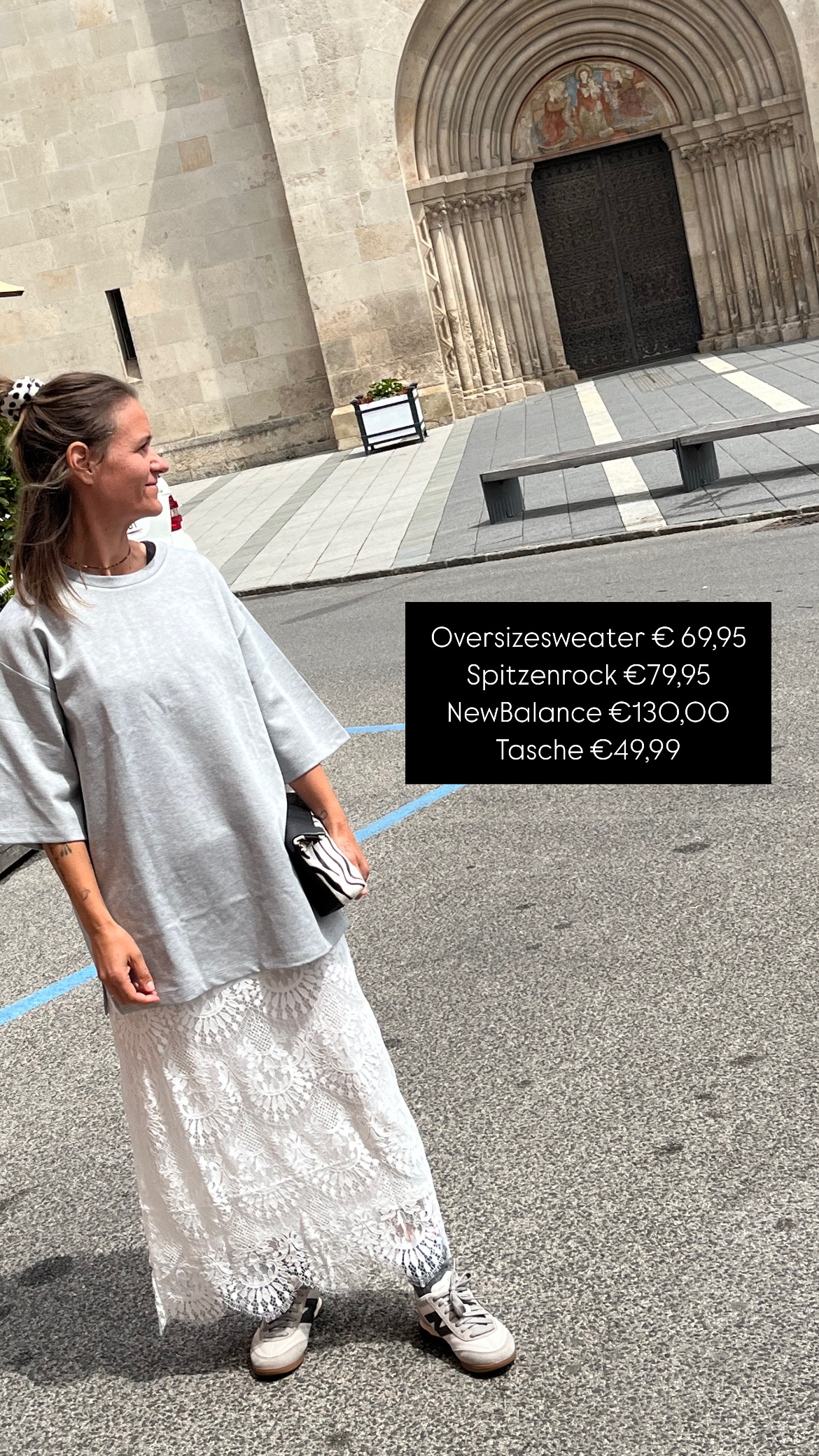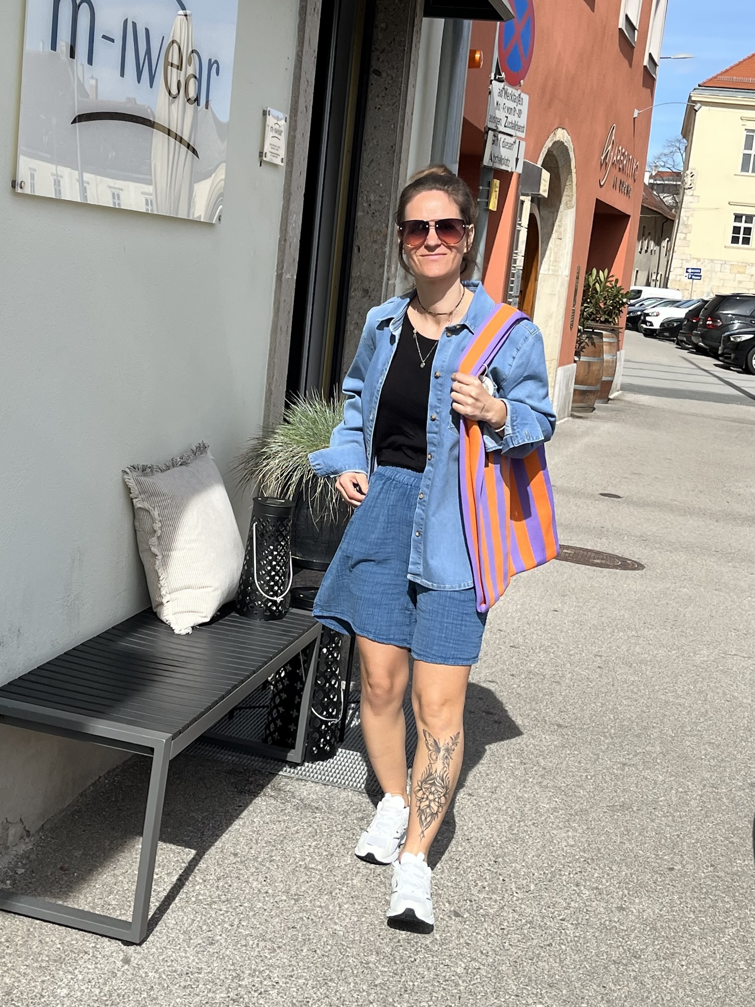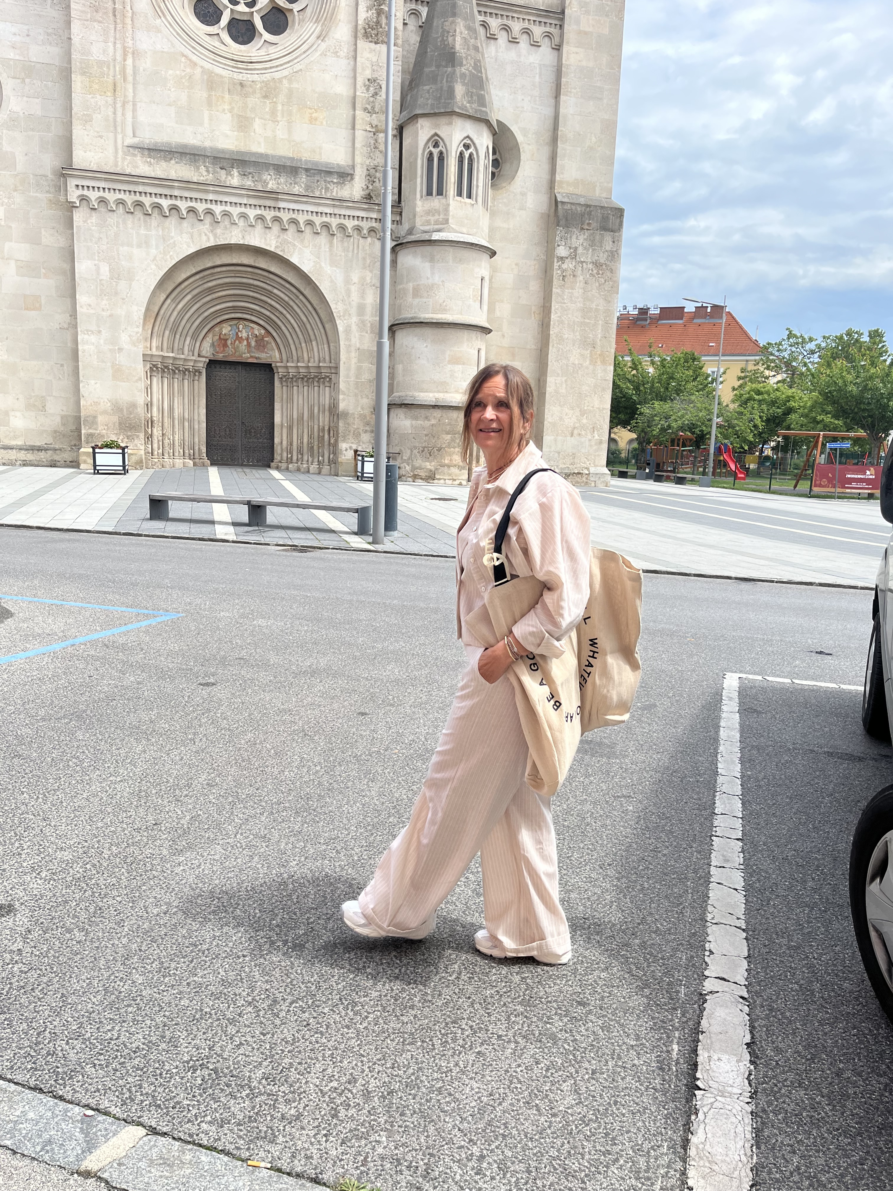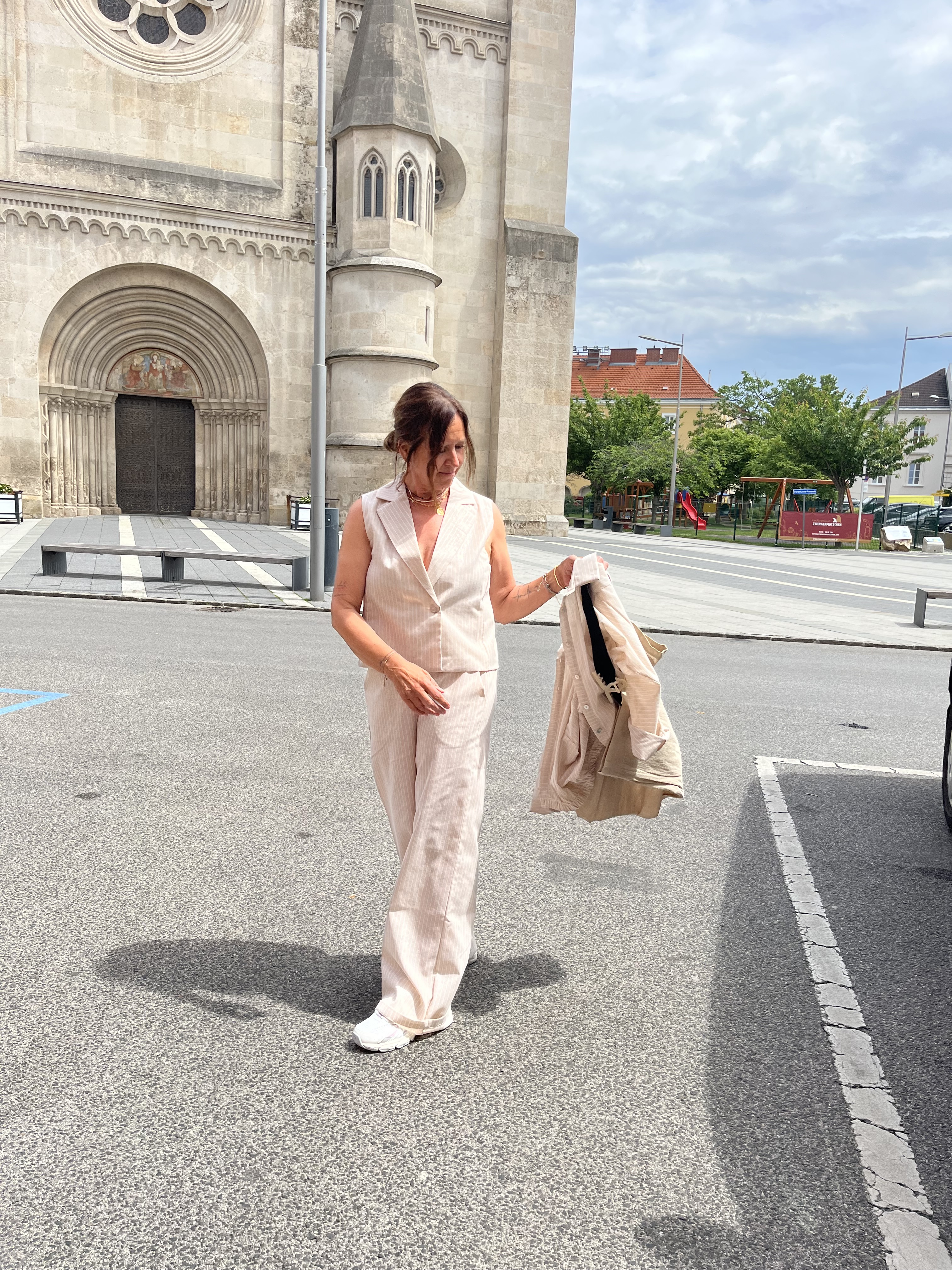 Gilet €79,95. Hose €89,95, Bluse €79,95, NewBalance €130,00 Shopper €24,99