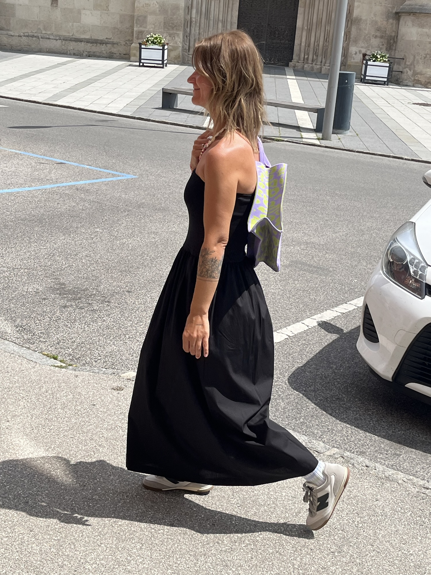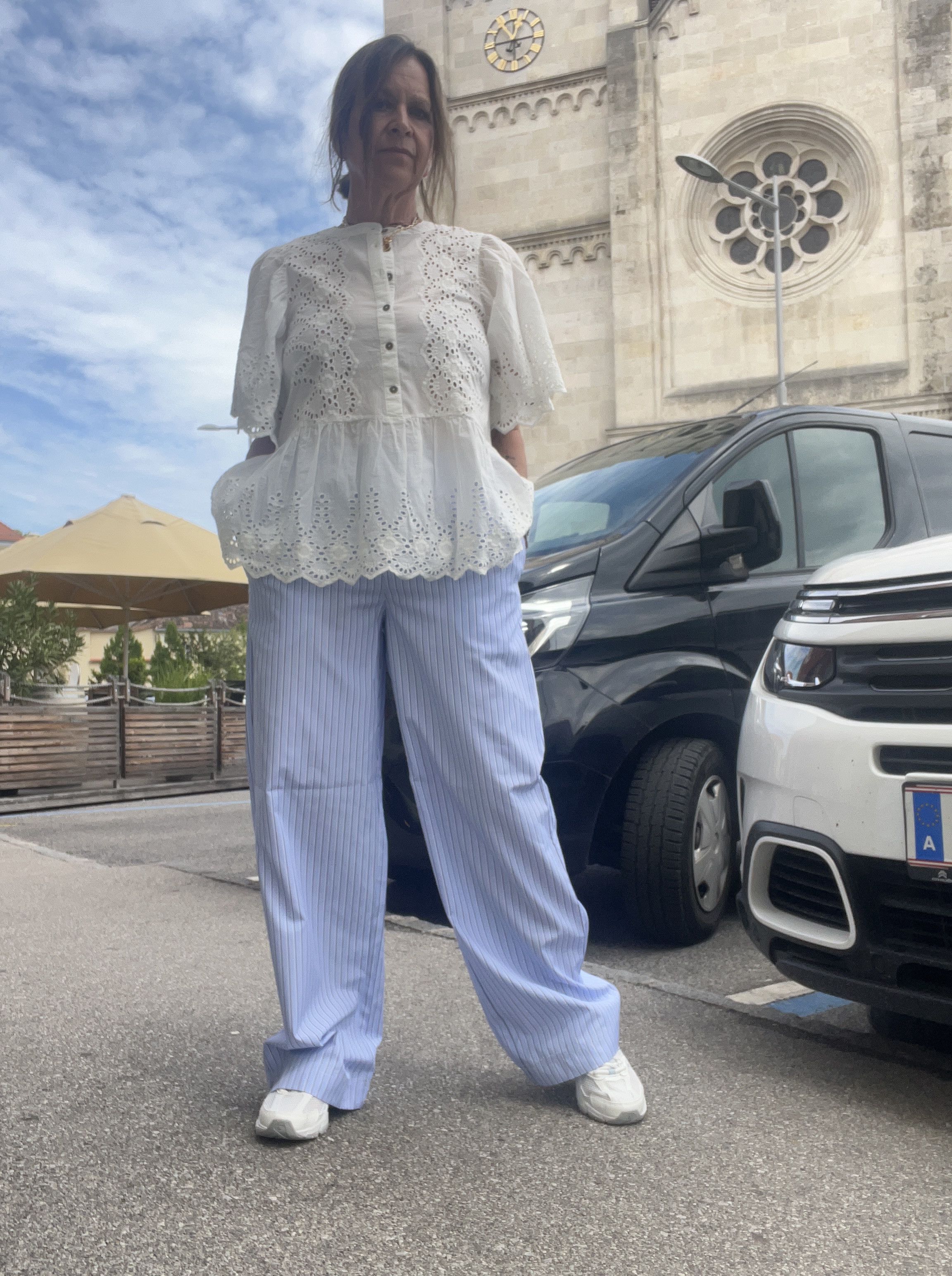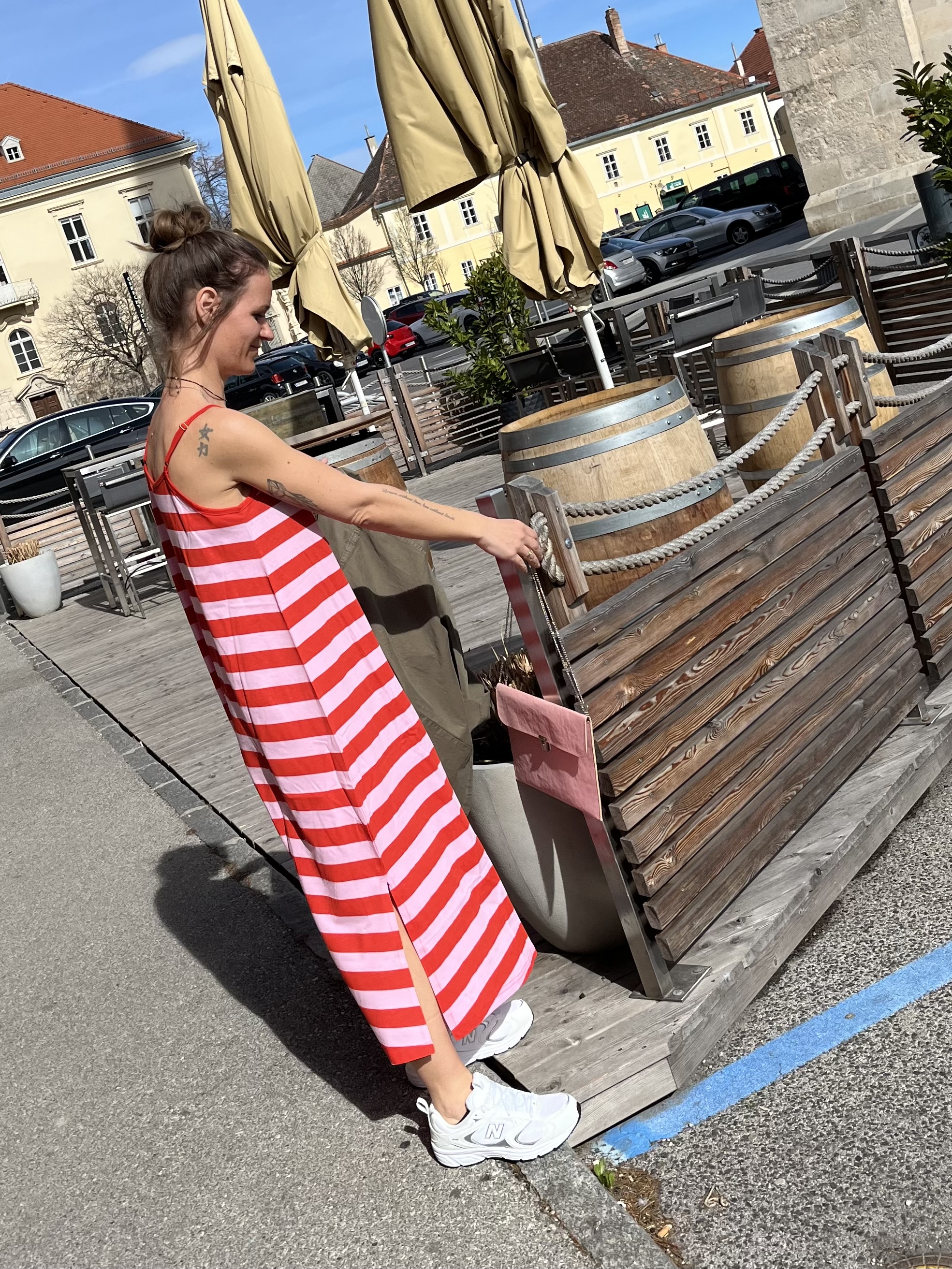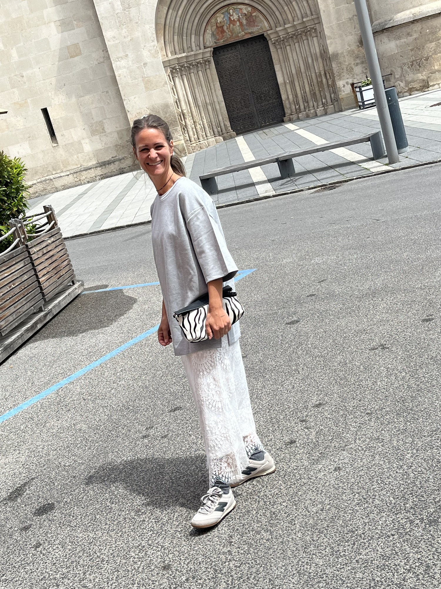 Gilet €79,95. Hose €89,95, Bluse €79,95, NewBalance €130,00 Shopper €24,99